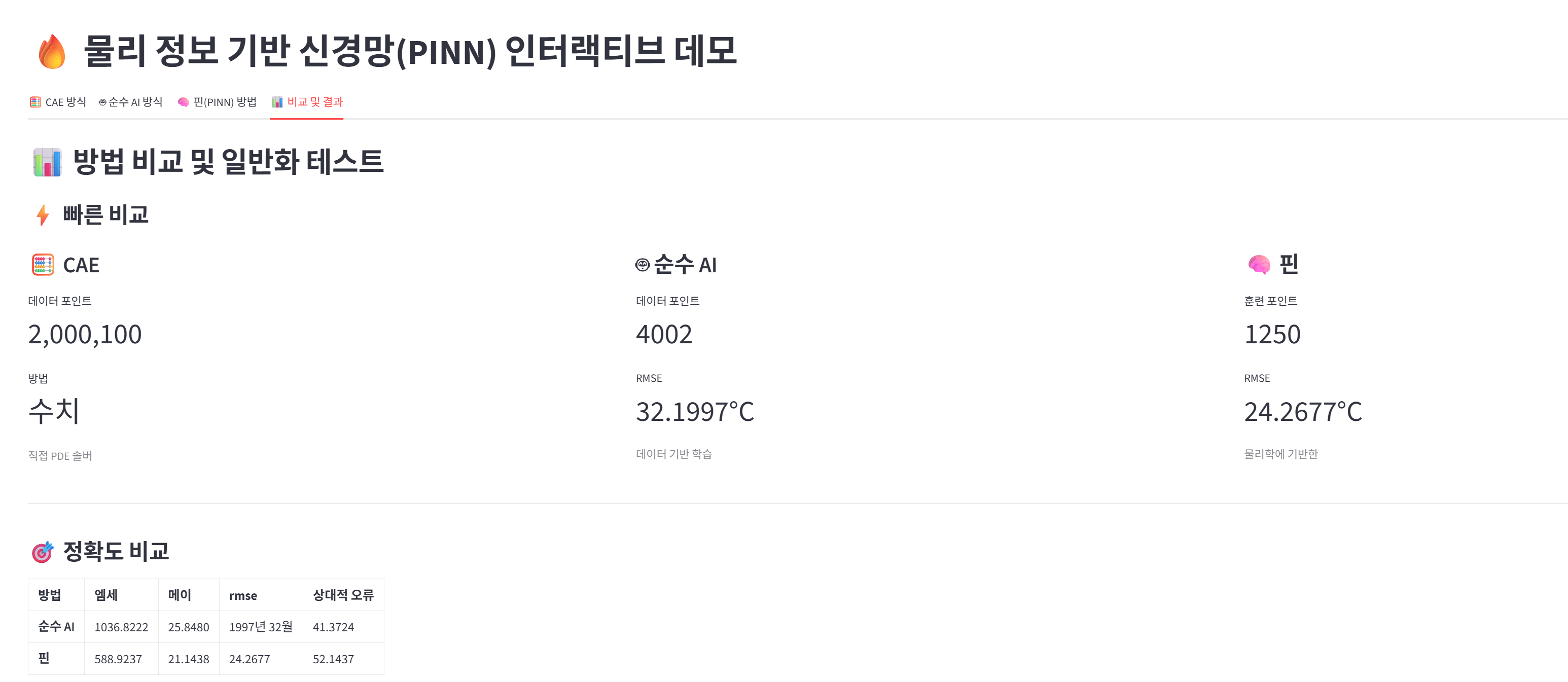 이것이 PINN의 힘입니다. 물리법칙을 학습했기 때문에 일반화가 가능합니다.