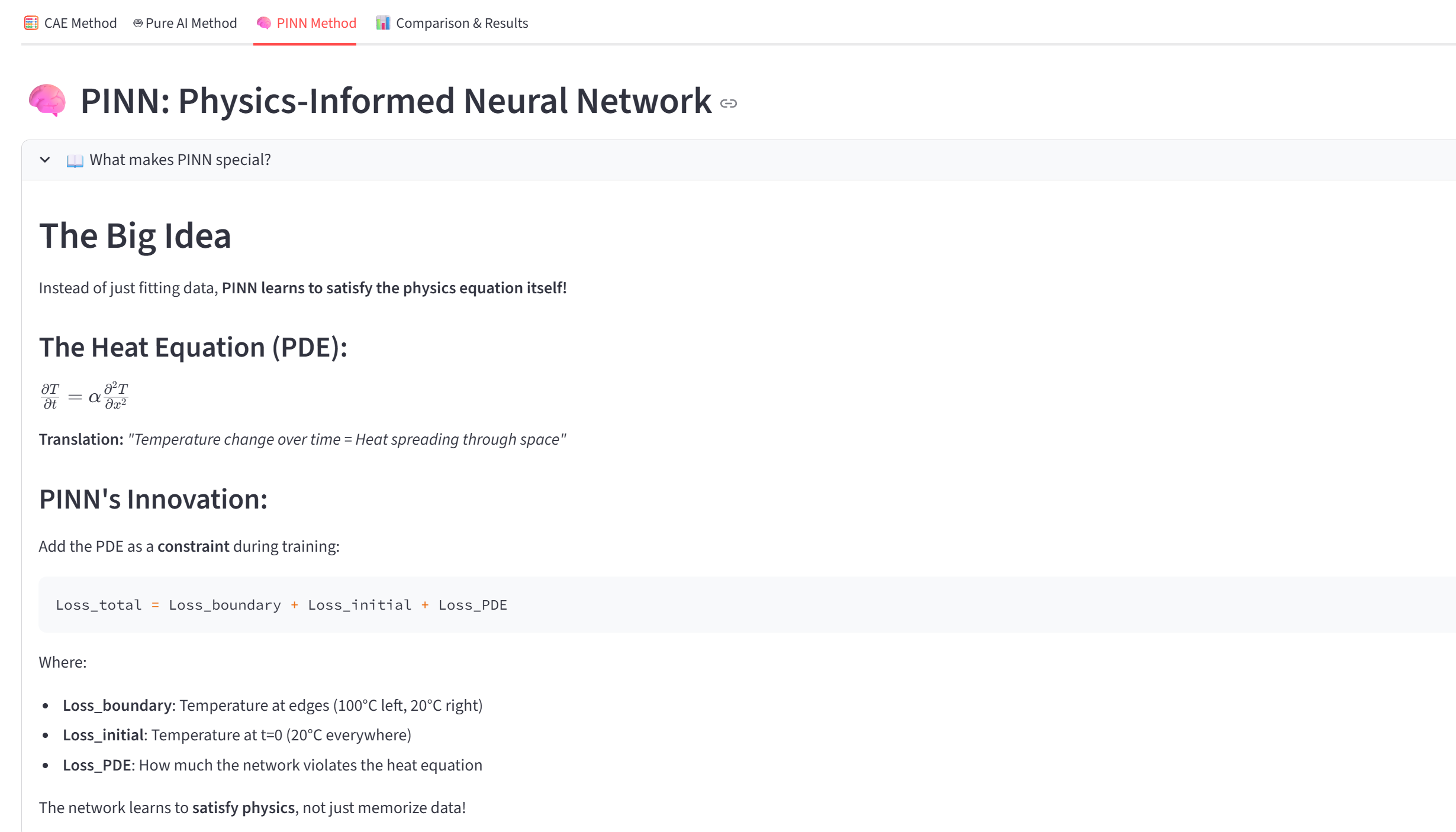 여기서 Loss_물리법칙은 열전도 방정식을 얼마나 만족하는지 측정합니다: